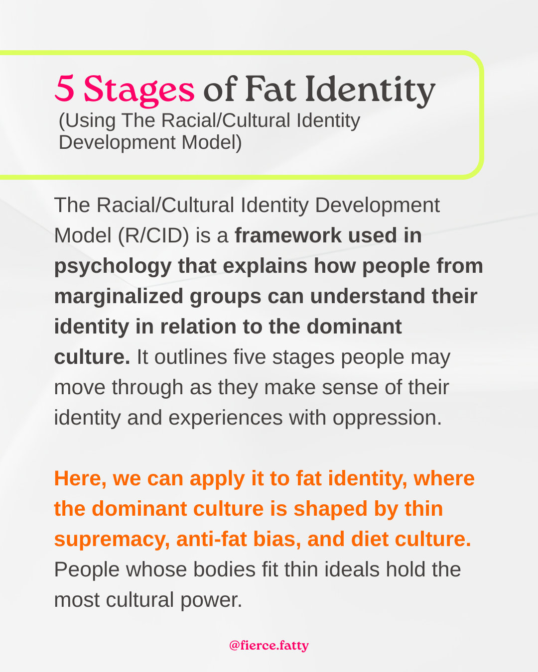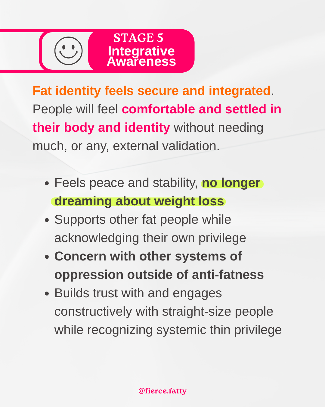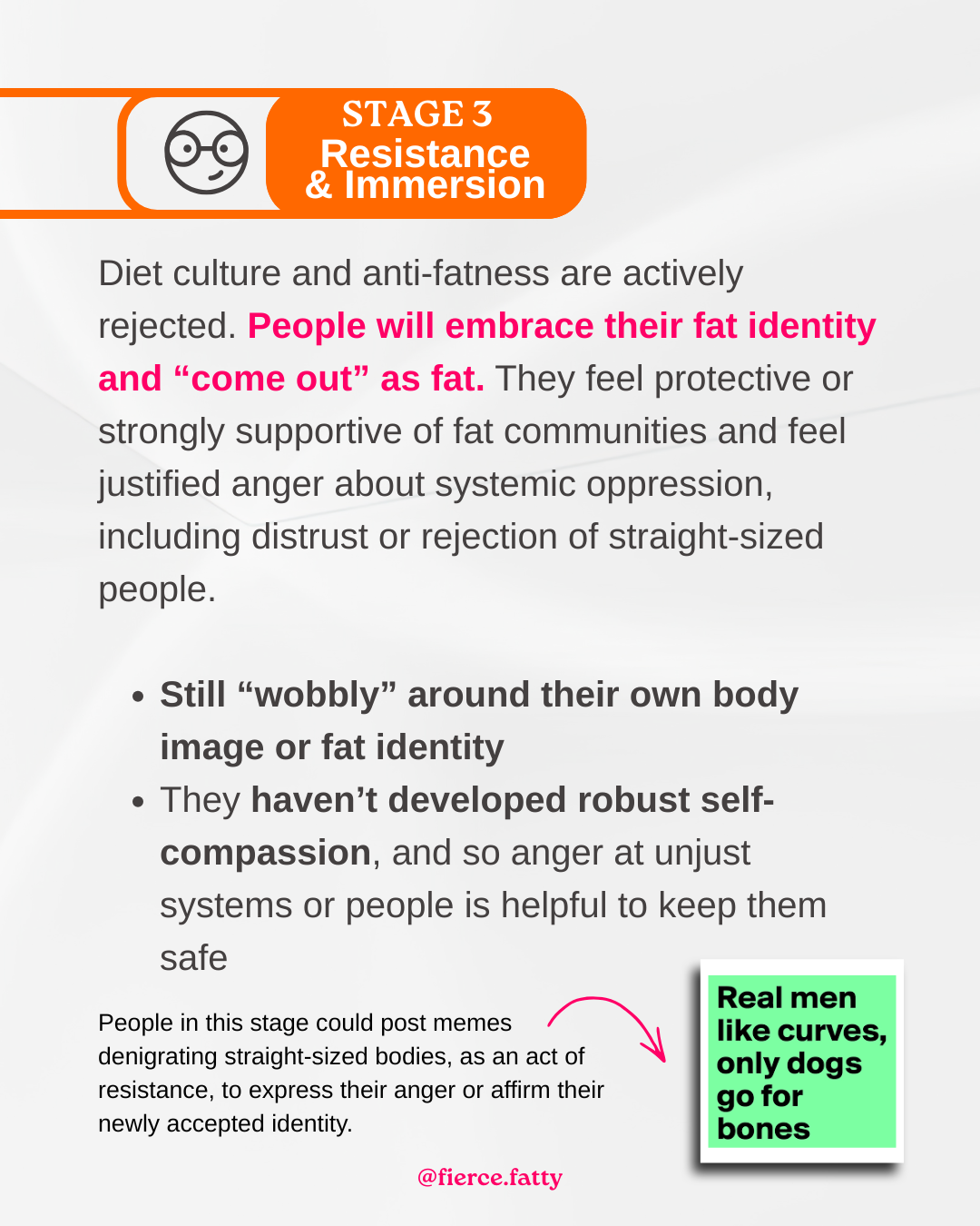Are you thriving in your fat identity, or still getting lured with the promises of diet culture (ahem, GLP-1s)? In this episode, I share the details on the stages of fat identity, from “ugh, why am I fat?” to “heck yes, I’m fabulous, unapologetically me!” Learn the signs that show you’re rocking self-acceptance alongside the traps that might still be holding you back. If you’ve lived your whole life being told that fat is bad and dieting will be your salvation, then unlearning those messages can be hard. This episode will give you a roadmap to track your progress and celebrate your journey so far!